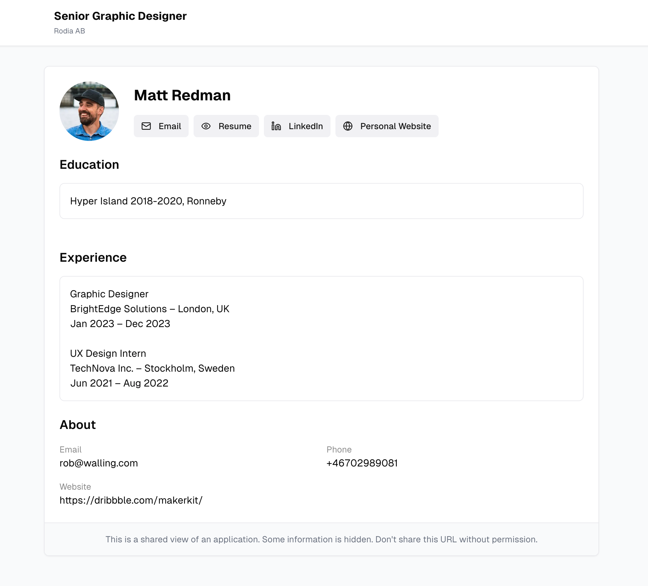 Send out your preferred calendar link to candidates and keep track of who’s been invited, directly in the pipeline.